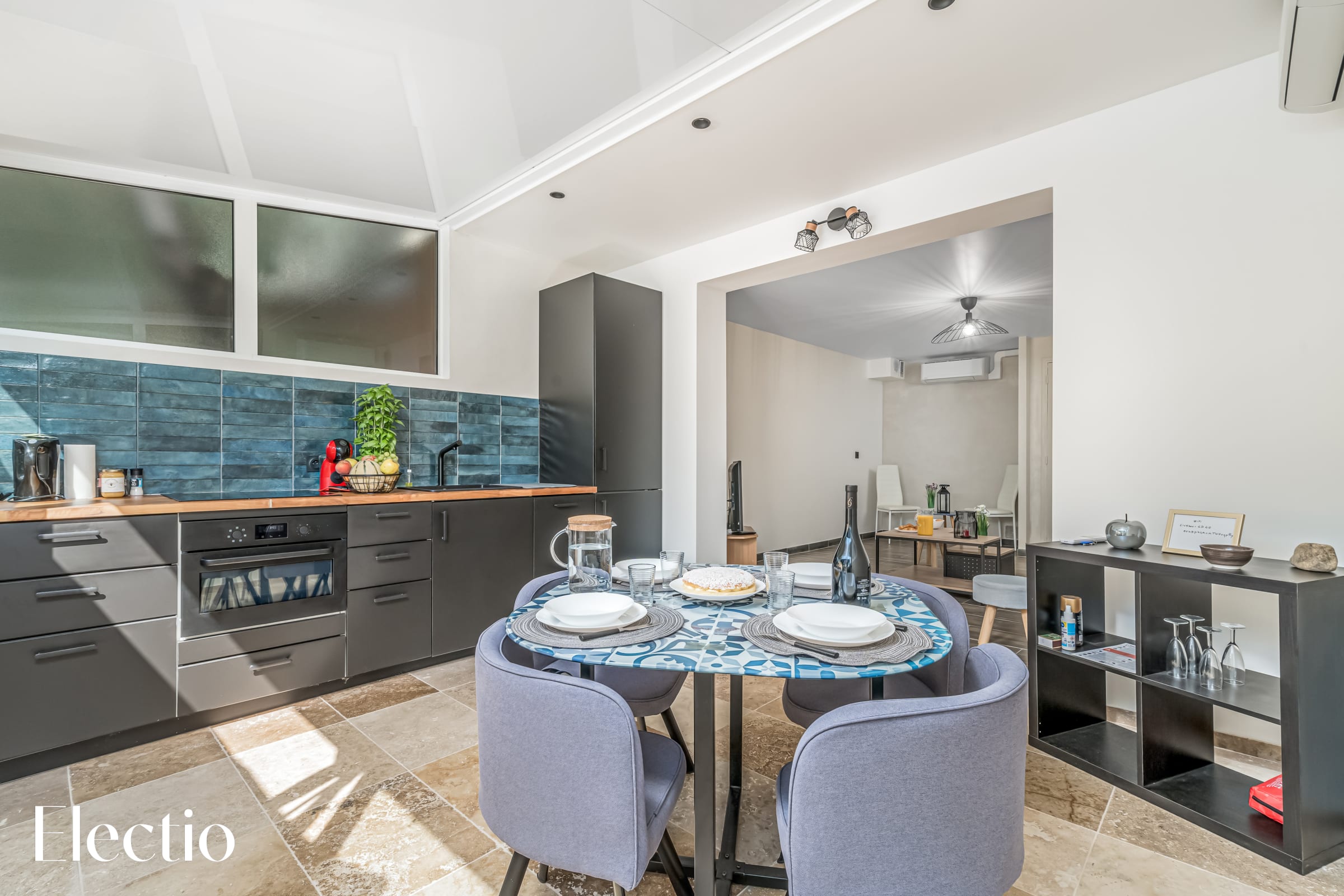 🪑 La salle à manger dispose d'une table pouvant accueillir jusqu'à 4 personnes, idéale pour des repas conviviaux en famille ou entre amis. Le Jardin, accessible depuis la pièce de vie, est équipé d'une table et de 4 chaises basses, parfait pour prendre votre petit déjeuner en plein air.