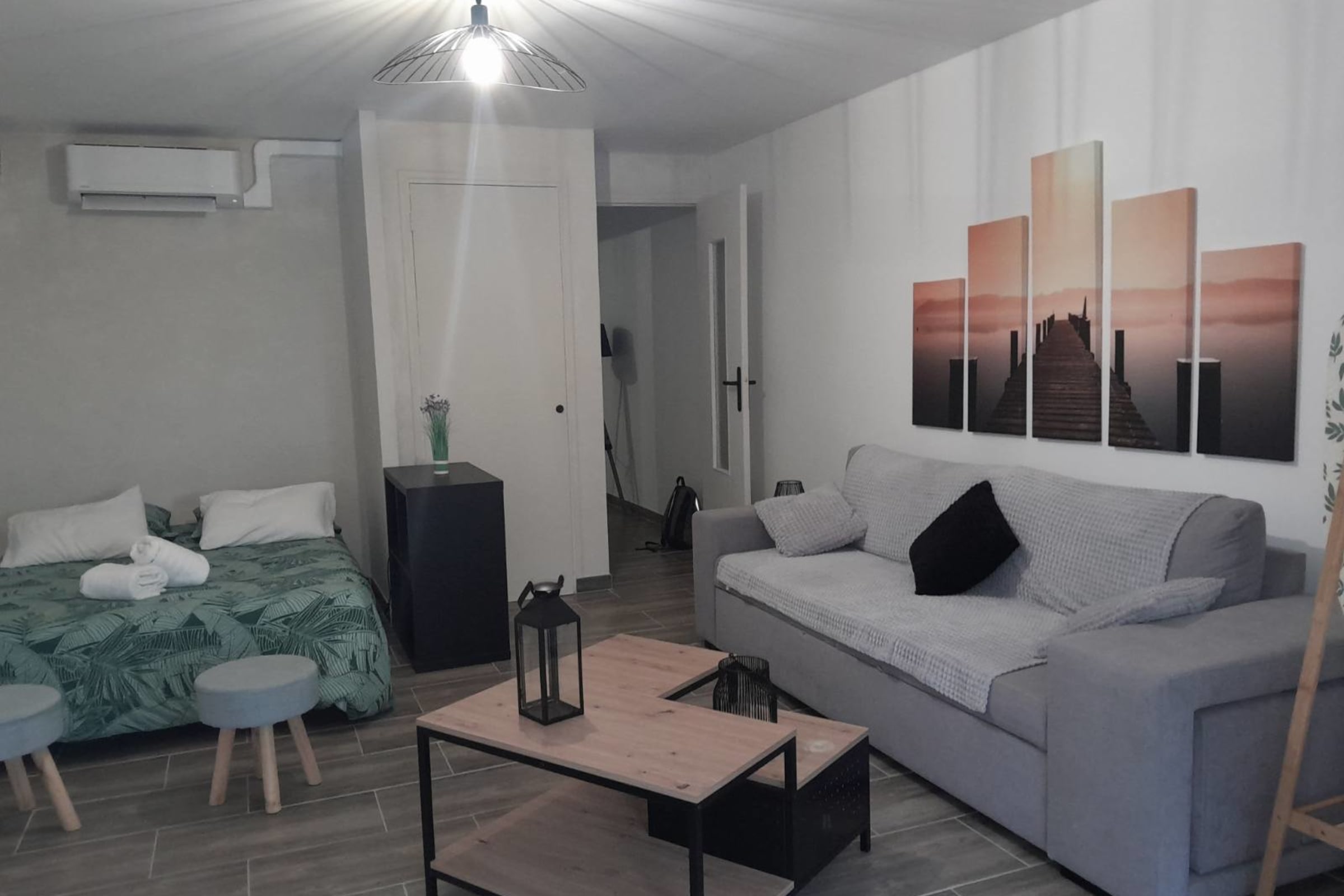 🛋️ Le salon, cœur de la pièce de vie, est équipé d'un canapé convertible confortable pour trois personnes, parfait pour se détendre après une journée bien remplie. En face du canapé, vous trouverez une télévision pour vos moments de divertissement. Plusieurs ventilateurs sont à votre dispositions dans l'hébergement, garantissant un confort optimal toute l'année.