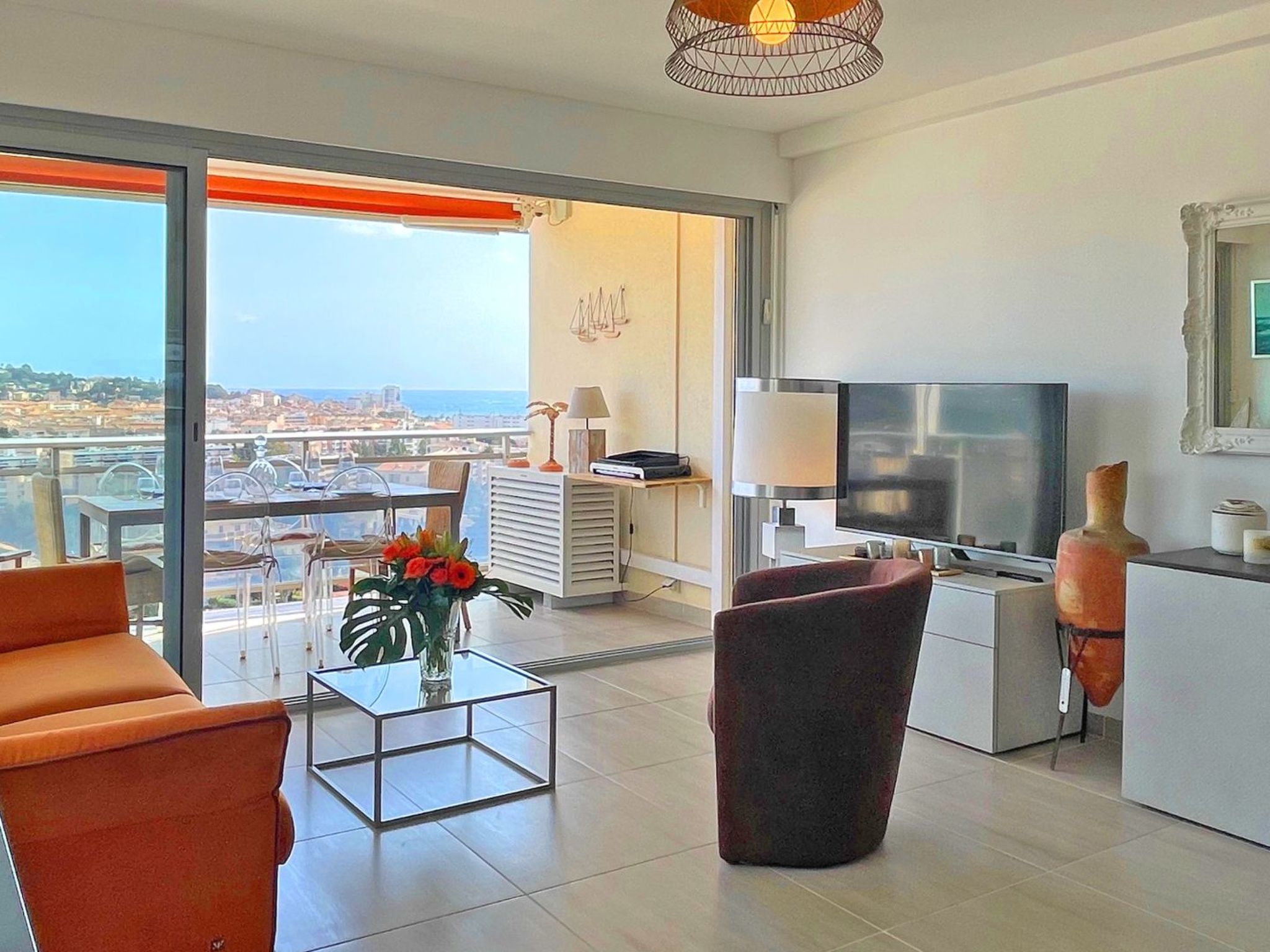 Appartement 3 pièces de 50 m² - Résidence Les Côteaux du Préconil7ème étage avec ascenseur - 4 personnes maximumMagnifique appartement rénové de 2 chambres, situé dans une résidence avec piscines et tennis, à quelques pas des commerces et à seulement 10-15 minutes à pied du centre-ville et de la plage. Profitez d'une vue mer depuis la pièce de vie et la terrasse. Parfait pour des vacances en famille.Hébergement sans classement ou en attente de classement*- Entrée avec nombreux rangements- Pièce principale avec salon : canapé, télévision écran plat et cuisine équipée ouverte avec coin repas : réfrigérateur, four, micro-ondes, plaques de cuisson induction 4 feux, cafetière Nespresso, etc... Accès terrasse et vue mer- Chambre 1 climatisée : Lit 140 avec rangements- Chambre 2 climatisée : lits 2x80 ou 160 avec rangements et lave linge dans le placard- Salle d'eau avec meuble double vasques, douche à l'italienne, rangement et sèche-serviette- WC séparés- Belle terrasse avec mobilier de repas, plancha électrique et vue merDivers :- Parking gratuit sur place selon disponibilité (Une trentaine de places visiteurs dans la résidence)- Piscine collective de 25m de longueur fermée d'octobre à mai - Tennis dans la résidence- Climatisation dans les chambres- WiFi de poche- Vue mer- Animaux non admisDistances :- Centre ville : 900m- Plage : 800m- Commerces : 300mHoraires d'accueil et de remise des clefs :Du lundi au vendredi entre 15h00 et 18h00 maximum.Le samedi (Juillet - Août) entre 16h00 et 18h00 maximum.Dimanche et jours fériés (hors samedi) : arrivée autonome à partir de 15h (boîte à clefs, modalités précisées après la réservation)Si vous souhaitez arriver en dehors de ces horaires, il est impératif de se renseigner avant de réserver.Non inclus (obligatoire) :- Dépôt de garantie - *Taxe de séjour Services inclus : - Protèges matelas et oreillers jetables- Torchons cuisines- Tapis salle de bainsRèglement intérieur :- Pas de fêtes / événements festifs- Logement non fumeur à l'intérieur