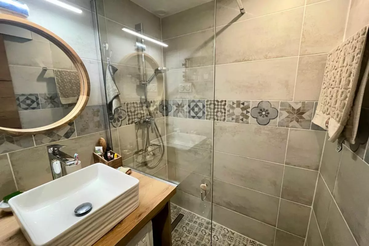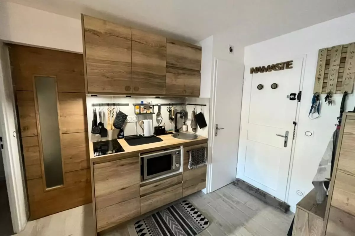 Entièrement rénové, il se compose d’une chambre accueillante avec un lit double 140x190, d’une salle de douche fonctionnelle, d’une cuisine entièrement équipée ouverte sur un salon convivial et d’une terrasse abritée pour profiter des doux instants en extérieur.