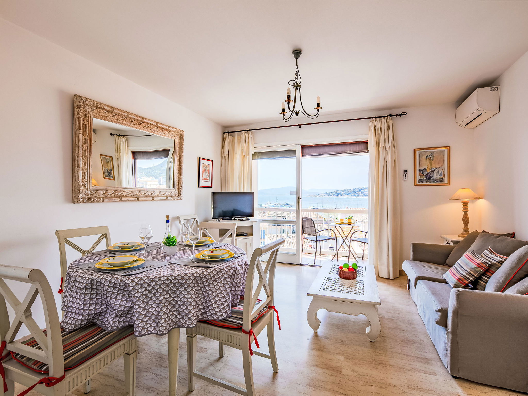 Appartement de 3 pièces 58 m2 au 2ème étage. Spacieux et clair, aménagement confortable: séjour/salle à manger avec TV et air-conditionné. Sortie sur le balcon. 1 chambre avec 1 grand-lit (1 x 160 cm, longueur 190 cm), air-conditionné. Sortie sur le balcon. 1 chambre avec 2 lits (80 cm, longueur 200 cm), air-conditionné. Cuisine ouverte dans l'entrée (mini-four, lave-vaisselle, 4 plaques vitrocéramiques, grille-pain, bouilloire électrique, cafetière électrique). Douche, WC séparé. Chauffage électrique. Grand balcon 15 m2, situation sud et situation ouest. Mobilier de balcon. Très belle vue panoramique sur la mer et les alentours. A disposition: lave-linge. Internet (Connexion WIFI, gratuit). Veuillez noter: logement non-fumeur. Détecteur de fumée. 83115003139DZ