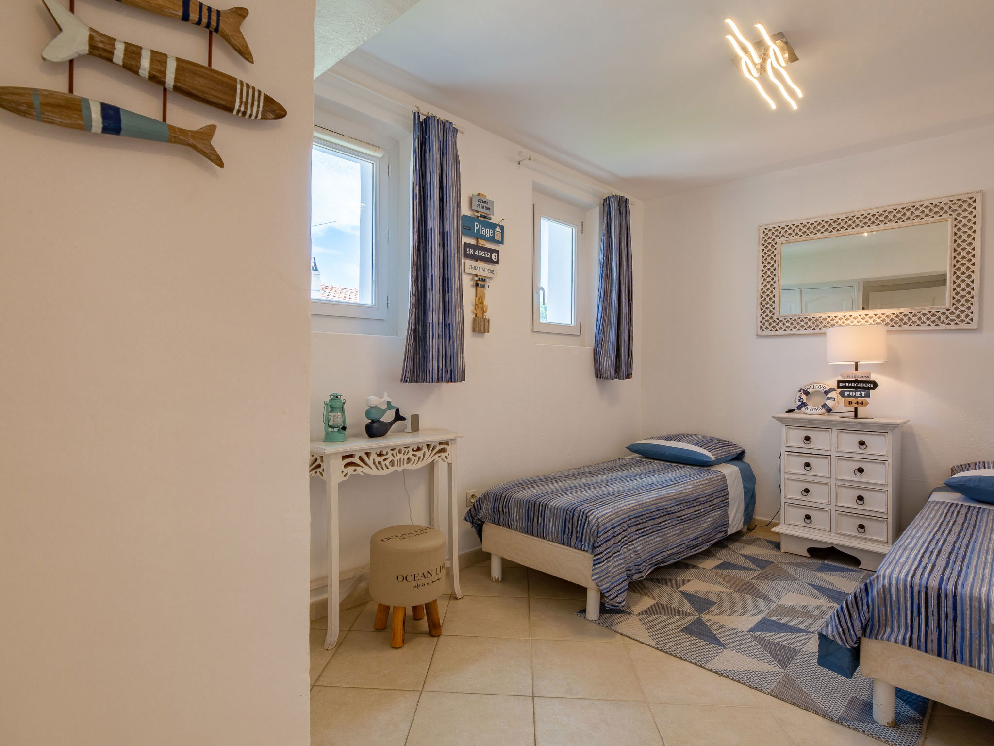 Appartement de 3 pièces 54 m2 au 3ème étage, situation ouest. Clair, aménagement agréable: séjour/salle à manger avec TV (écran plat). Sortie sur le balcon. 1 chambre avec 1 lit double (2 x 90 cm, longueur 200 cm). Sortie sur le balcon. 1 chambre avec 2 lits (70 cm, longueur 190 cm). Cuisine ouverte (2 plaques vitrocéramiques, grille-pain, bouilloire électrique, cafetière électrique, combiné micro-ondes). Bain/WC, double vasque. Air-conditionné, chauffage à air chaud. Petit balcon 5 m2. Mobilier de balcon. Vue sur la mer. A disposition: lave-linge, fer à repasser, sèche-cheveux. Internet (Connexion WIFI, gratuit). Garage No 81 à 50 m, hauteur 175 cm, largeur 190 cm. Veuillez noter: logement non-fumeur parking pour 1 petite voiture. Détecteur de fumée. Annonce d'un particulier (art 155, IV du CGI). 83115005227DP