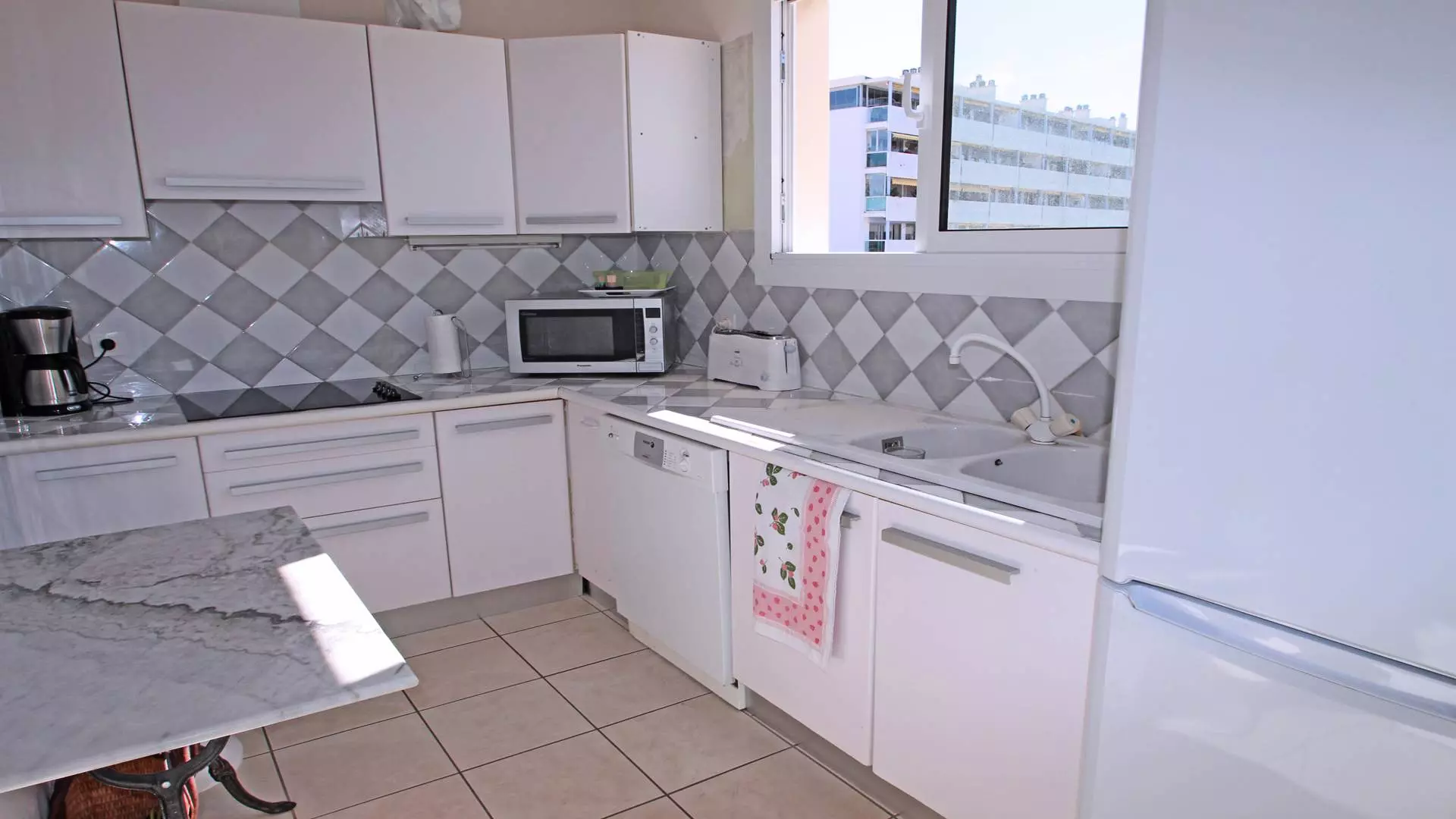 - Cuisine séparée équipée avec plaque de cuisson vitrocéramique 4 feux, réfrigérateur/congélateur, four micro-ondes, lave-vaisselle, etc...