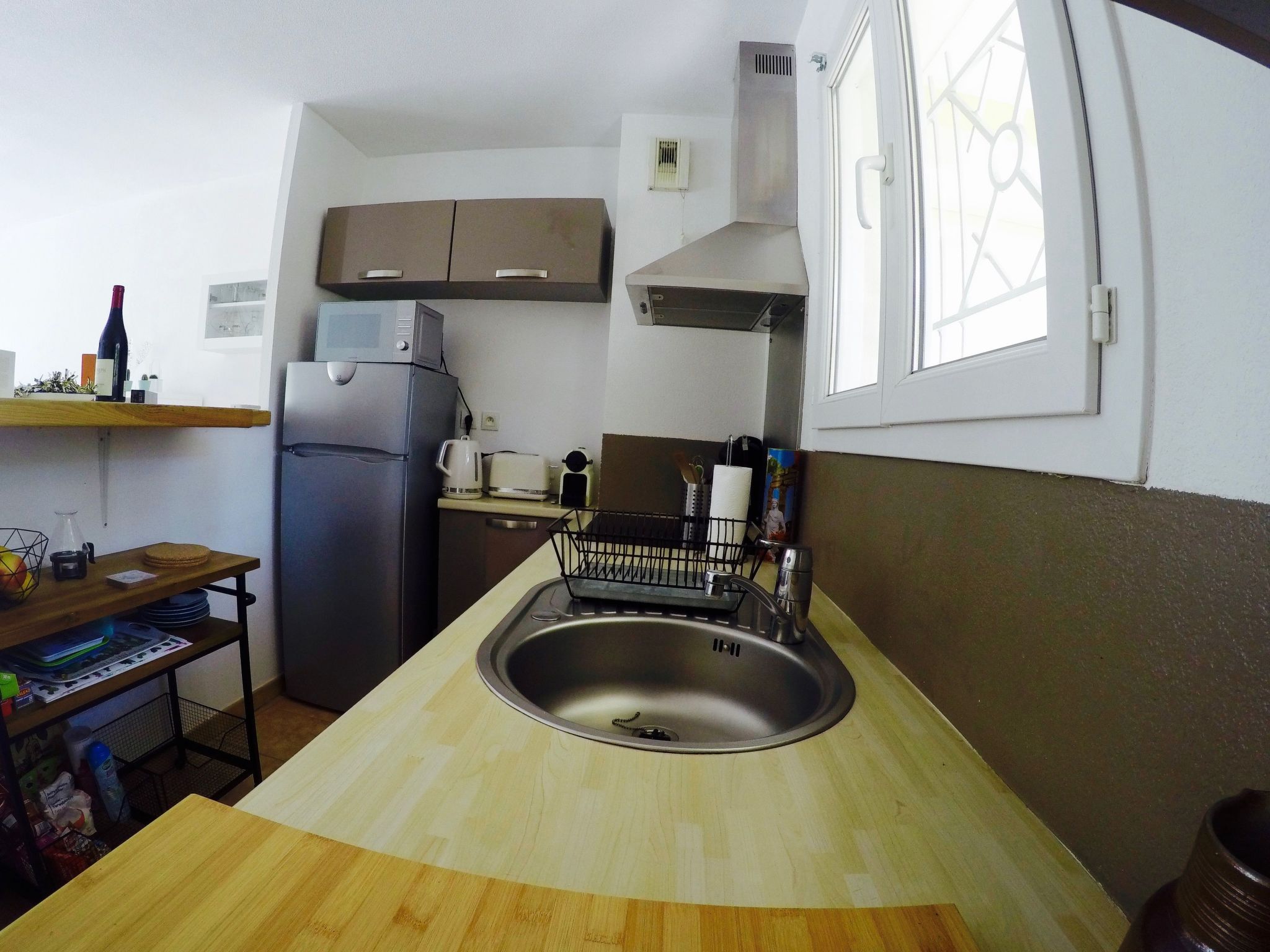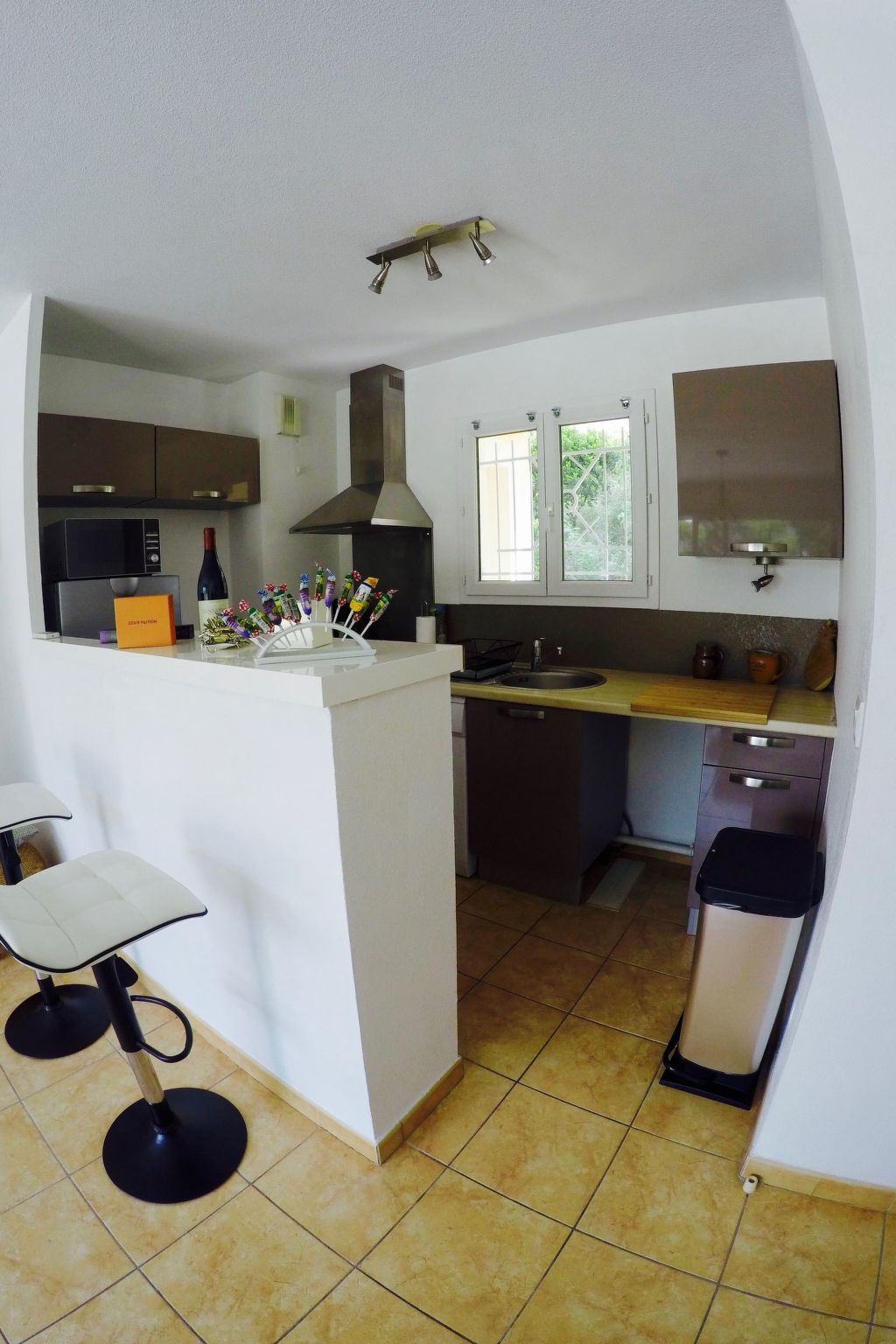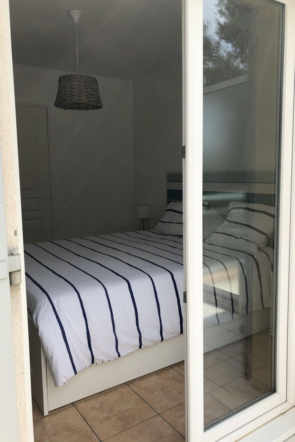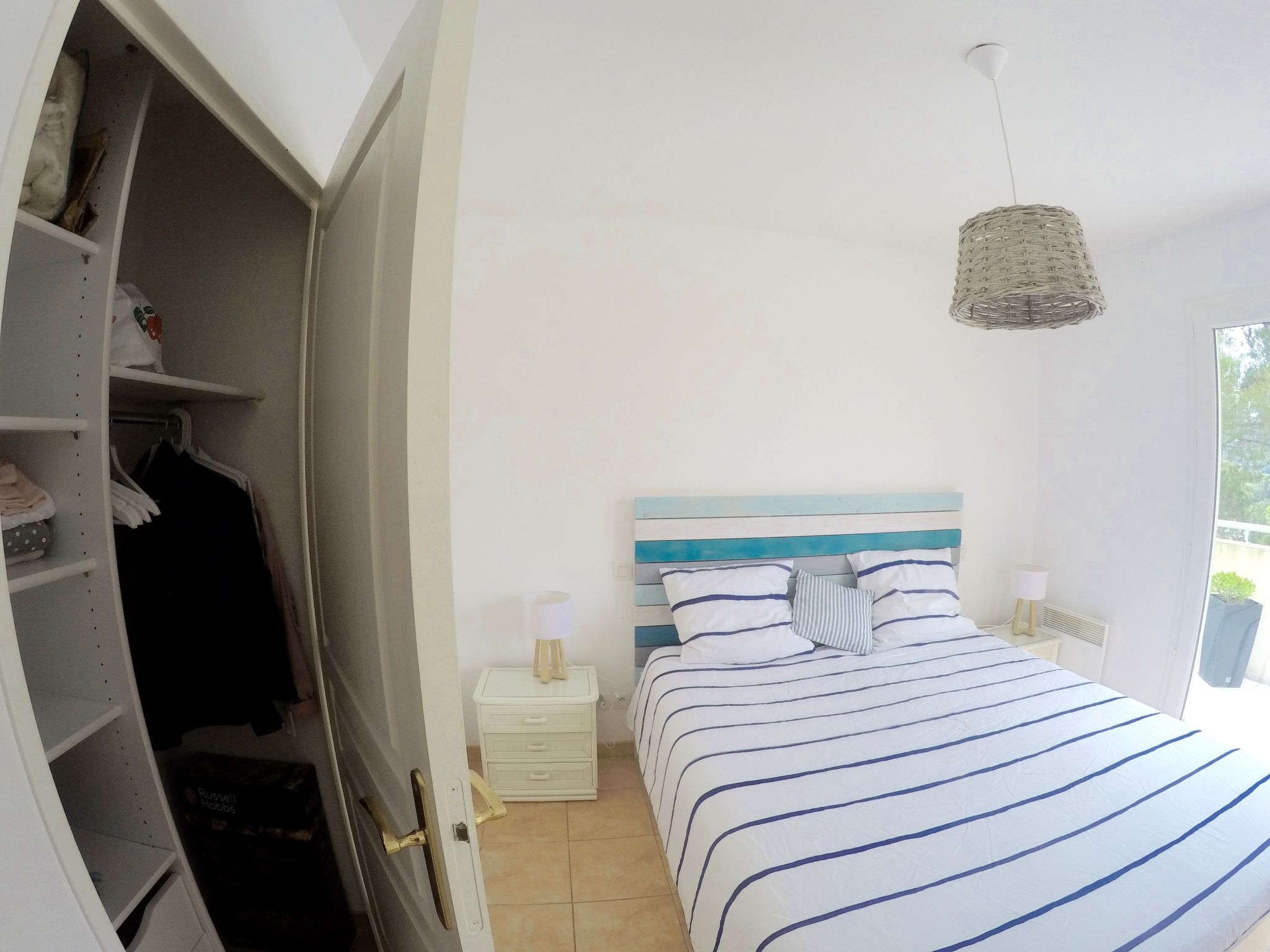 L'intérieur est conçu pour votre confort et votre commodité. L'appartement, d'une superficie de 43 m2, est bien au-dessus de la moyenne habituelle de 33m2 et propose de nombreux équipements de qualité. Il comprend une pièce principale climatisée avec un coin cuisine équipé (lave-vaisselle, plaques de cuisson, réfrigérateur, cafetières, micro-ondes, et bien plus), un canapé-lit de 140 cm, une chambre climatisée avec un lit de 160 cm, toutes deux donnant un accès direct sur la terrasse. La salle de bain est équipée d'une douche et l'appartement dispose d'un dressing indépendant, offrant suffisamment d'espace pour stocker vos affaires.