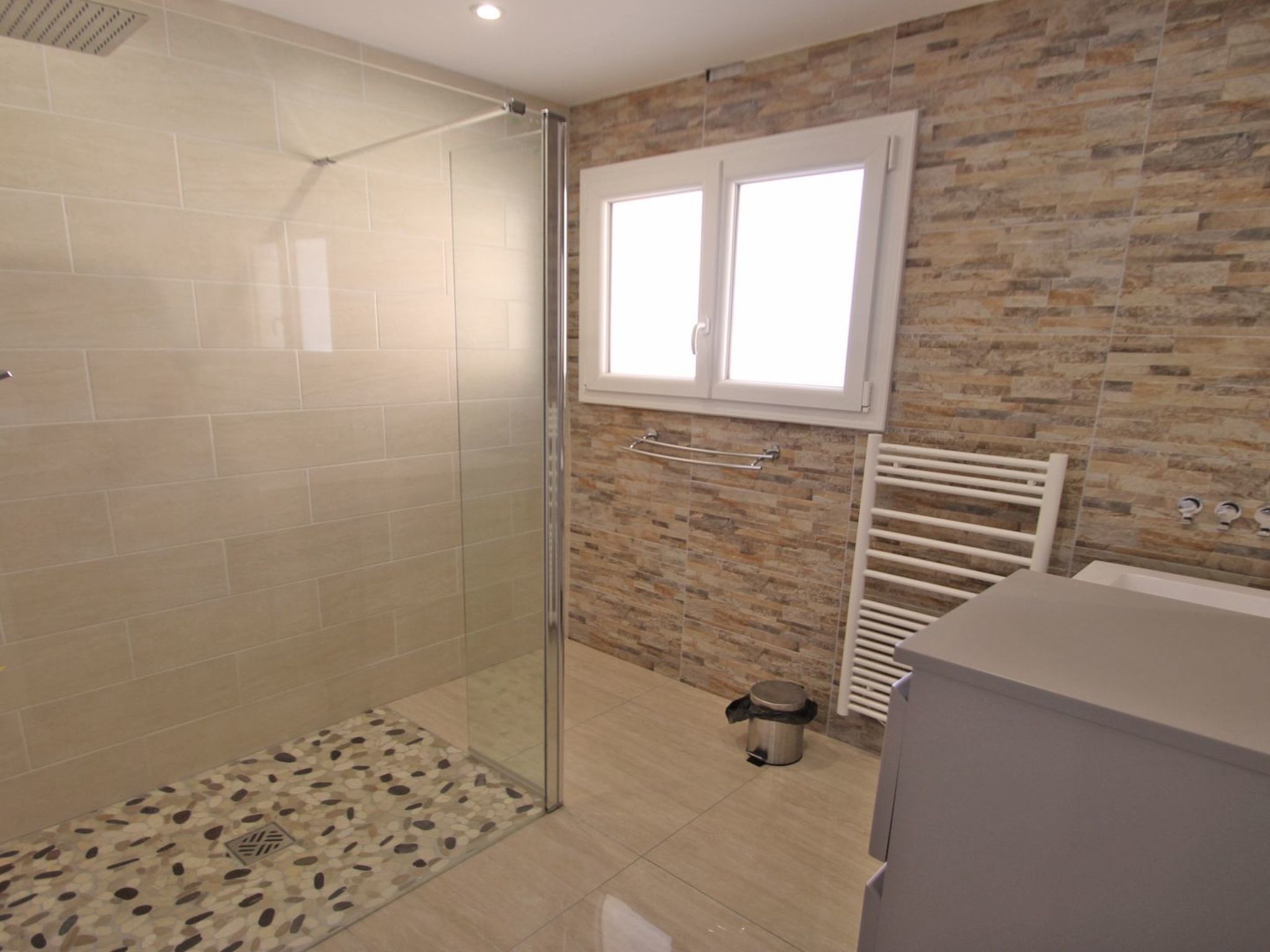 - Salle d'eau avec douche, meuble vasque, lave-linge