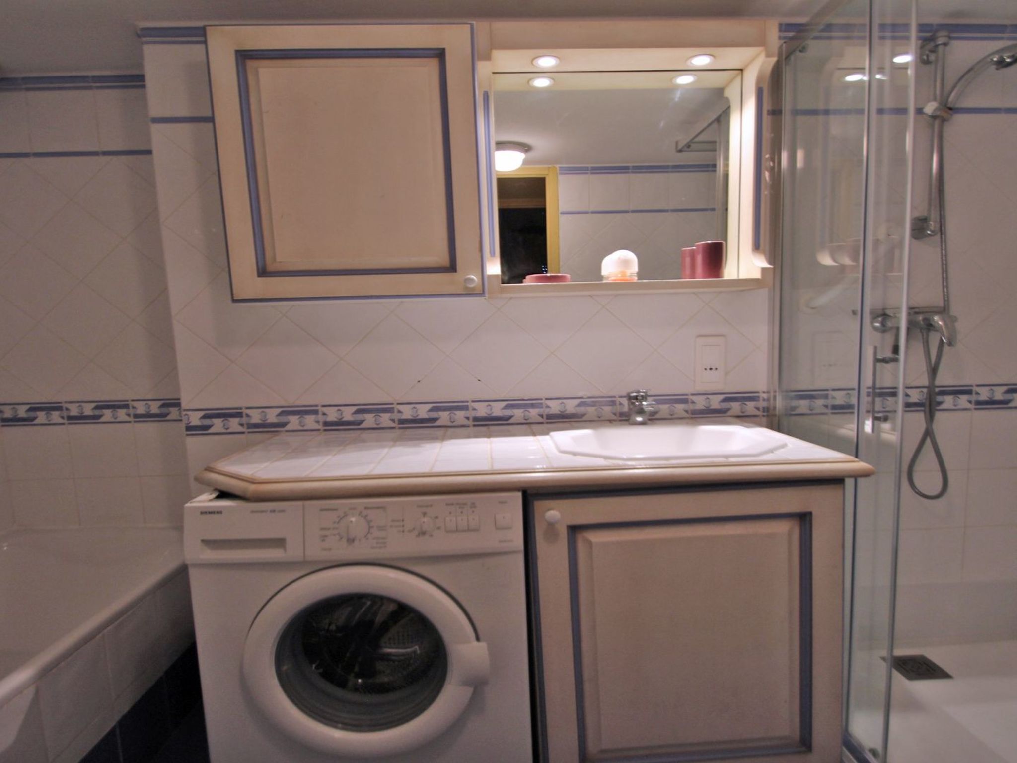 - Salle de bains 2 avec baignoire et douche, lave-linge, meuble vasque