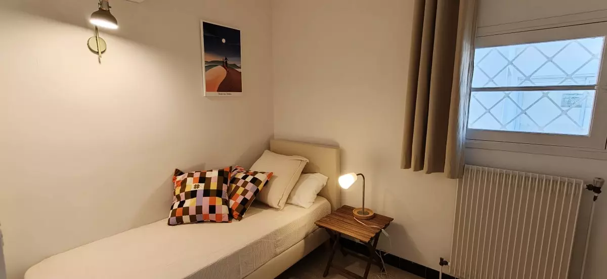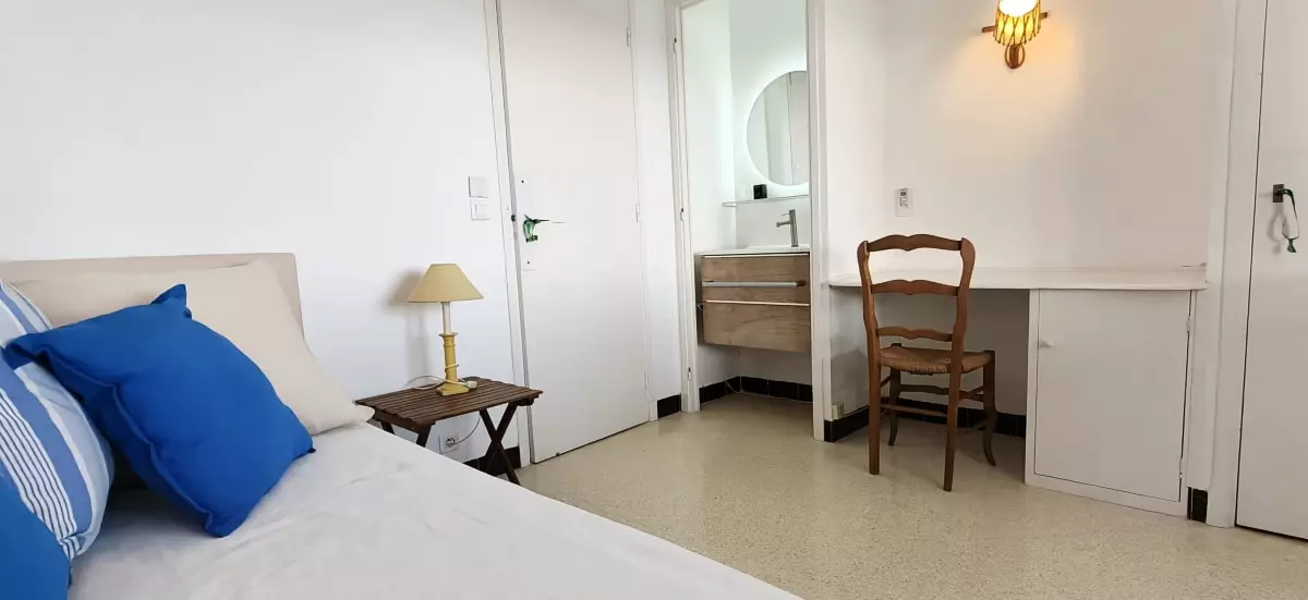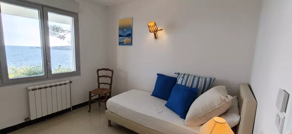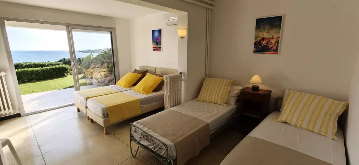 - et six chambres avec vue sur la mer, trois chambres avec un lit double, deux chambres avec un lit simple et une chambres avec quatre lits simples.