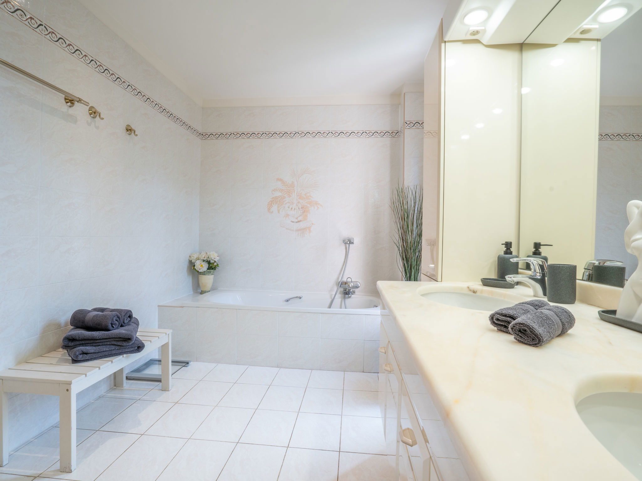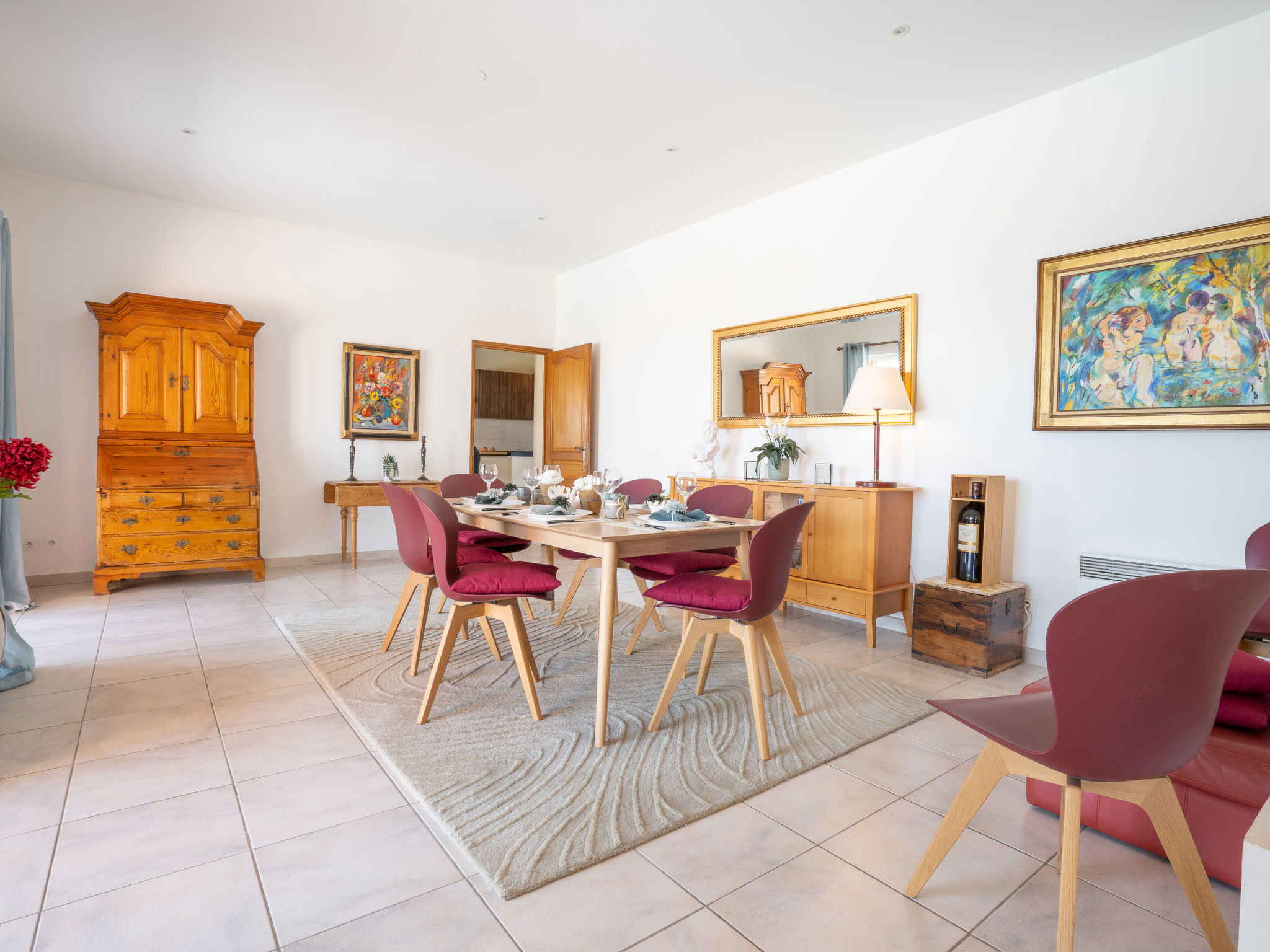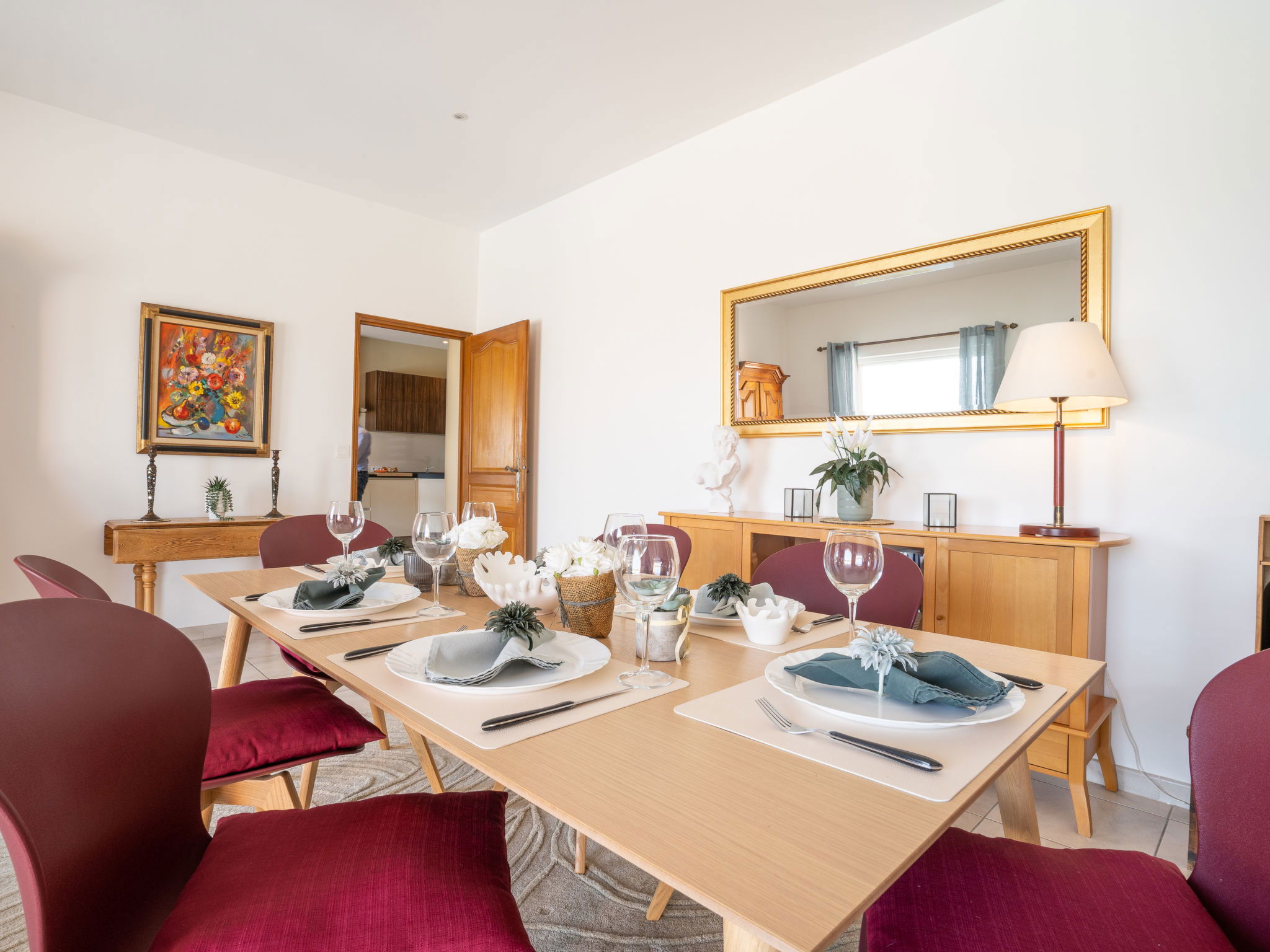 Belle, grande villa "Cacharel". Dans le quartier de La Nartelle, à 7 km du centre de Sainte Maxime, à 3.3 km du centre de Les Issambres, à 18 km du centre de Saint Tropez, sur un versant, quartier résidentiel, à 1 km de la mer. A usage privé: terrain 1'500 m2, jardin entretenu avec pelouse et plantes, piscine (12 x 4 m, disponibilité saisonnière: 01.Jan. - 31.Dec.) avec alarme de sécurité et systeme d'électolyseur au sel. Terrain de pétanque, place de parking sur le terrain, garage individuel. Magasins 3.3 km, arrêt de bus 1.3 km, plage de sable 1 km. Le propriétaire n'accepte pas les groupes.