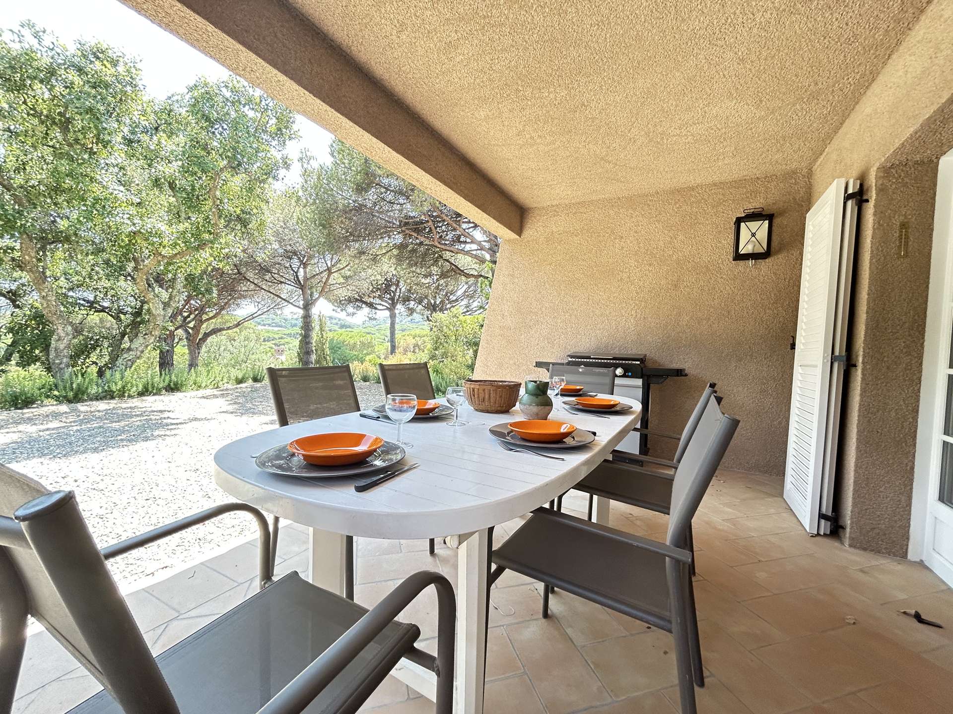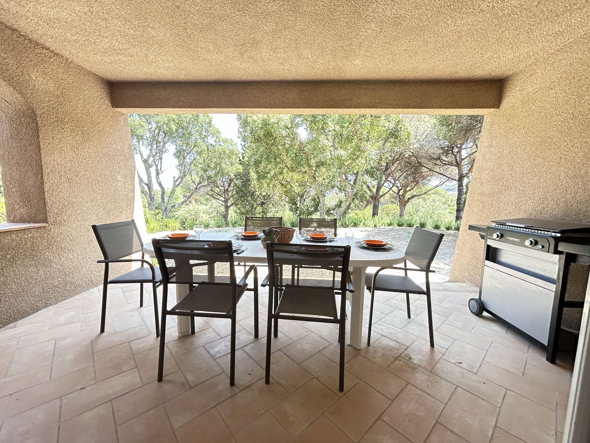 Les avantages de cette location de vacances proche du bord de mer : Une grande terrasse avec salon de jardin et espace repas barbecue. Un emplacement de parking privatif, la climatisation,