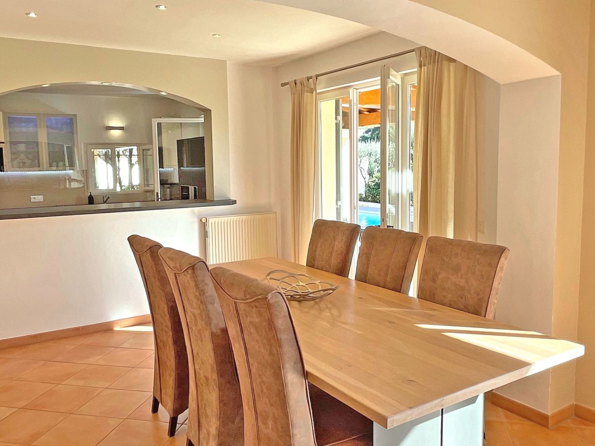 - Cuisine très bien équipée (réfrigérateur congélateur, plaques de cuisson induction, hotte, lave-vaisselle, four, micro-ondes, cafetière Nespresso, vaisselles diverses) table d'appoint avec chaises