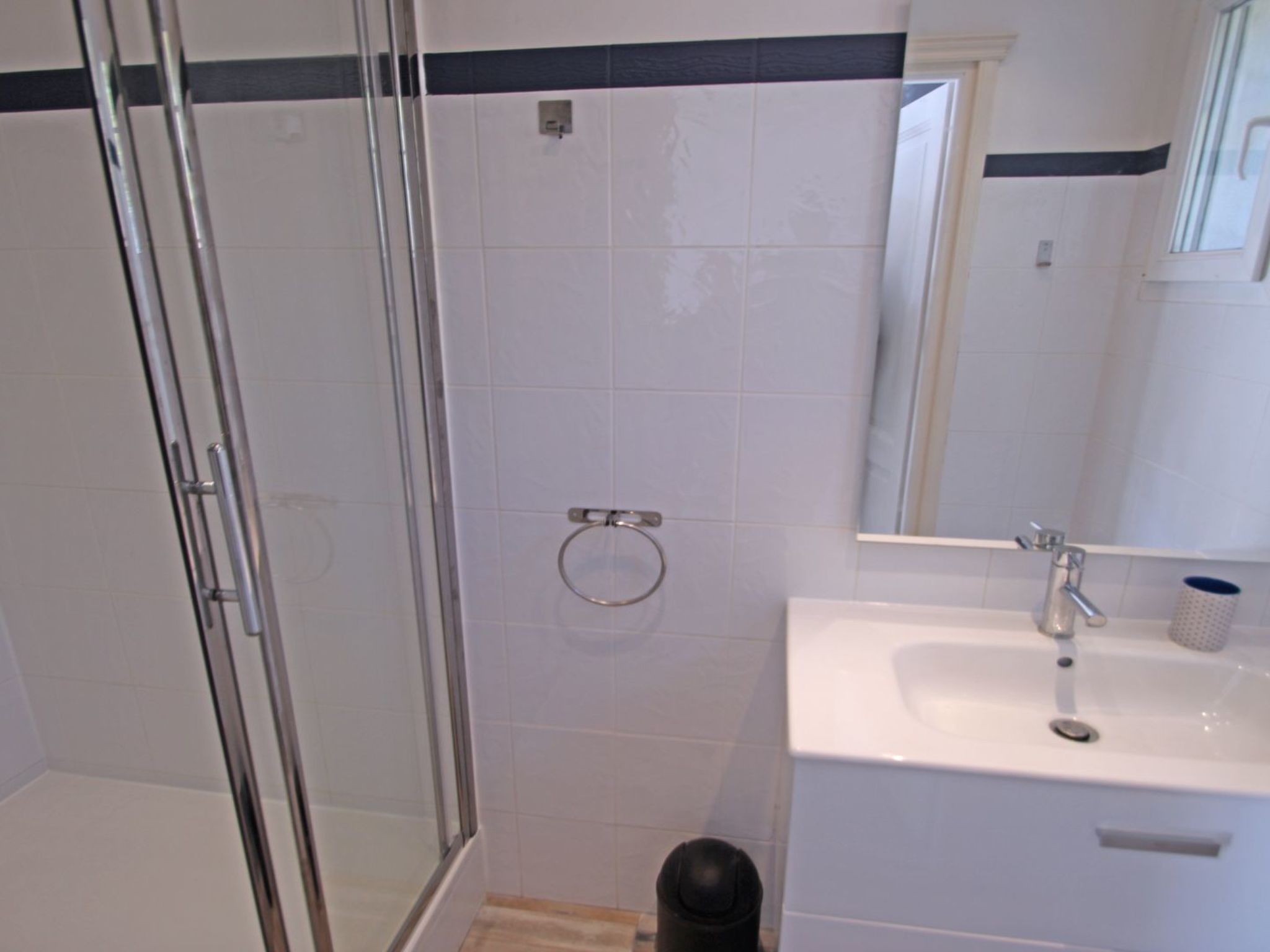 - Salle d'eau avec douche, lavabo et lave-linge