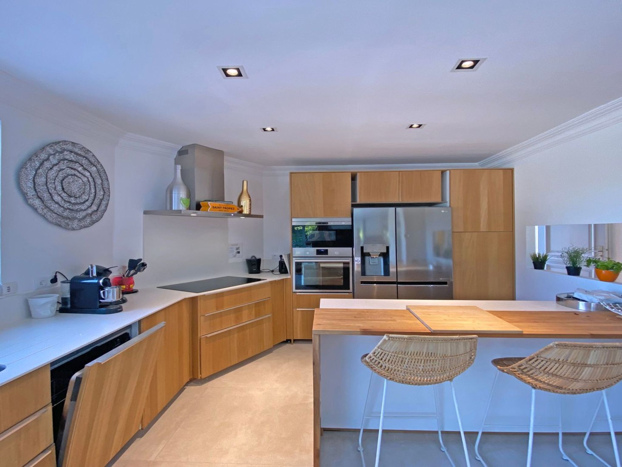 - Cuisine équipée ouverte : plaques de cuissons, four et micro-ondes, lave-vaisselle, réfrigérateur américain, machine à café, etc...